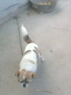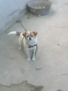 我家有讨人喜欢的小狗,它黄白相见的毛,两耳尖尖的,一双蓝眼睛,总是闪着炯炯的光,只要听到陌生人来,它就绿行它的职责;汪;汪;汪;地向家人报告,我就出去迎接客人,它就顺从地一个劲地摇尾巴,看的我非常高兴。