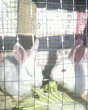 可能是那些小家伙们太可爱,太招人喜爱了吧。引起了弟弟对他们的独特眷顾,以至一有空闲时间,就提起它俩的耳朵,跑一段迈克·杰克逊的太空步,或是拿一片白菜叶,挑逗它们,以至掀起了一场即兴街舞。哎,可怜的小兔兔啊!