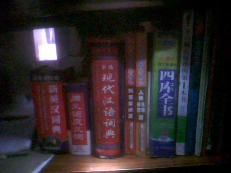 再来看看这里,一个典型的书架,上面放着我常用的一些书,包括词典,辅导书,课外书等。如果我有不懂的问题,第一个想到的就是书架,找找有没有我想要的答案。这里放置的书可以说是我的一笔知识财富。