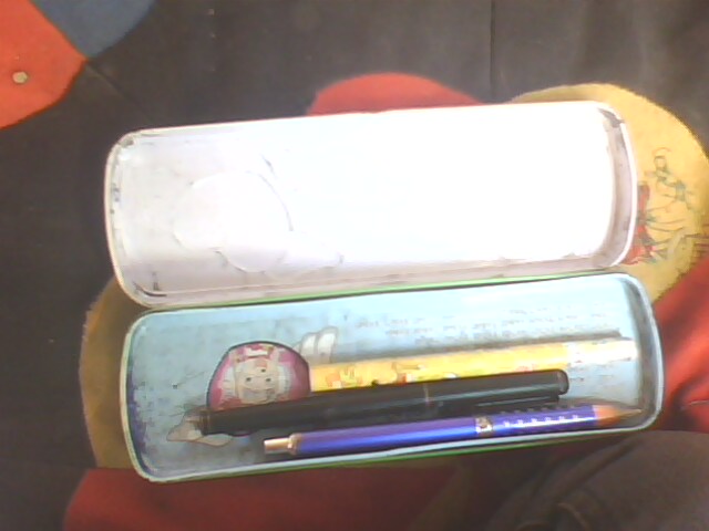 我有一个漂亮的文具盒,他的外面有一只可爱的小猫正股着嘴看着你呢,好像在跟你撒娇。又好像是捧腹大笑。