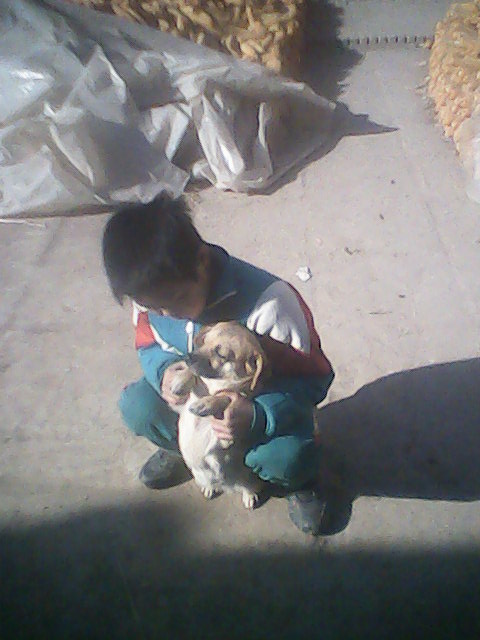 狗狗长得很好看,它的性格,行为,举止都能够和我们一家人融和在一起,瞧,它在我弟弟的怀里撒娇呢!