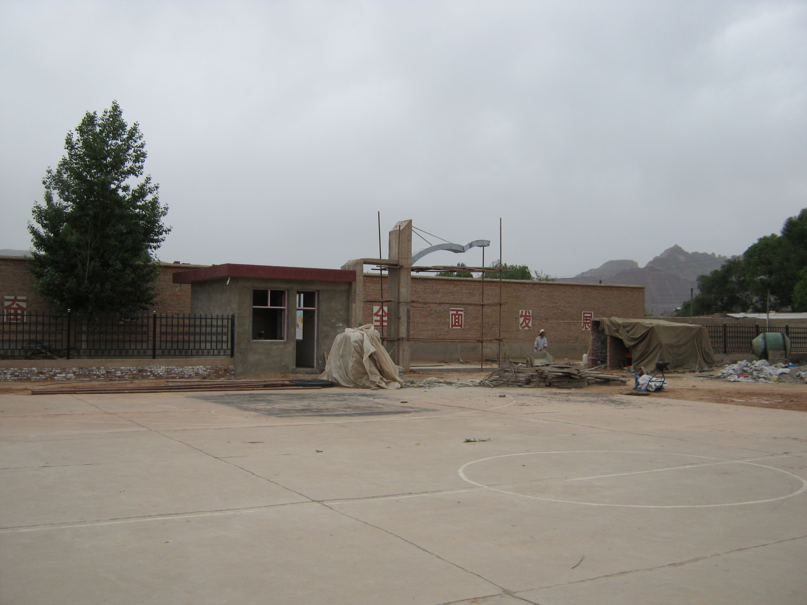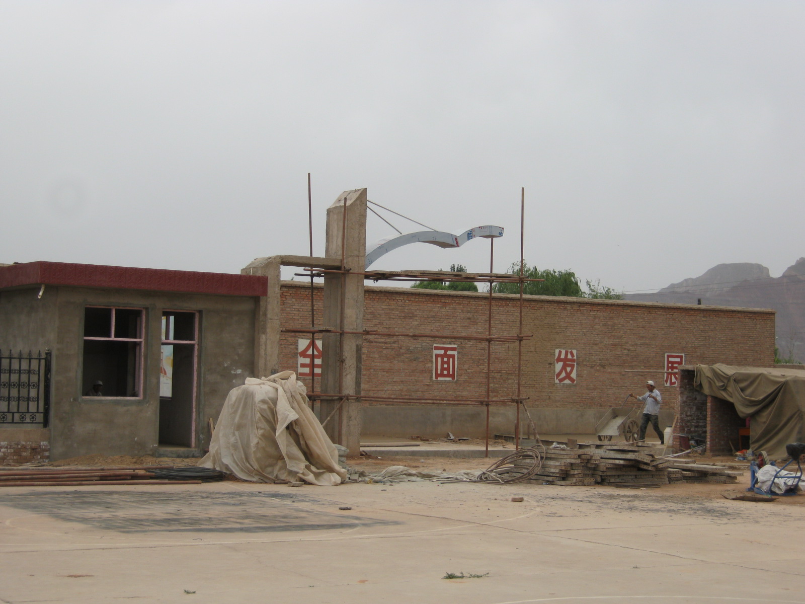 但是一想到等学校修建好了以后,我们的校园会变得非常的漂亮,我们也就只好忍受了,学校现在正在修建大门,大门的轮廓已经出来了,铁质的围栏已经修好了。