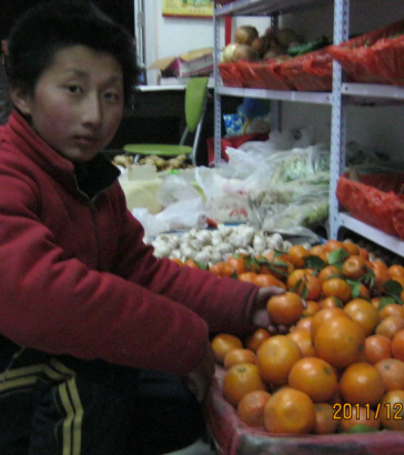 继续向前走,你还会看到许许多多香甜诱人的水果,此时,你已经到达水果区了,你看,红红的苹果正羞涩的望着你,金黄的大鸭梨正高傲的望着你,真像一个不可一世的公主,葡萄却懒洋洋的趴在水果盘中,那傻傻的样子,让人不禁发笑,这里的花样繁多,虽然现在是冬天,但一年四季中都有不同的水果在这里出售,让你一包口福。