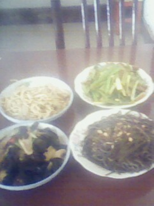 第二盘菜是木耳浴,第三盘炒土豆丝,第四盘是蕨根粉,做的方法跟一开始的方法一模一样,如果你品尝一口,保证让你流恋忘返,看着都想流口水,会让你尝到一个不一样的菜式口味,欢迎大家来光临时我们家乡的美食