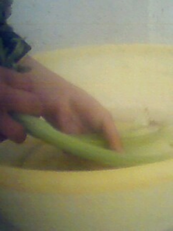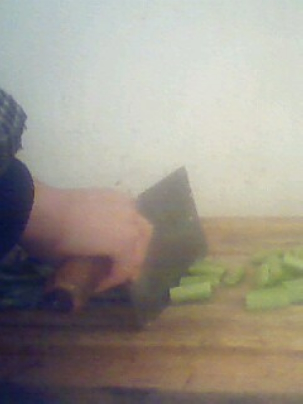 接下来是切菜,这项是细心的活儿,没耐心的千万别尝试,以免伤害到自己,先切芹菜,要一截一截的切,长度要一样,看起来才整齐,切肉要一片一片,薄薄的,形状要后适中,如果少了道程序,就会影响到口感。
