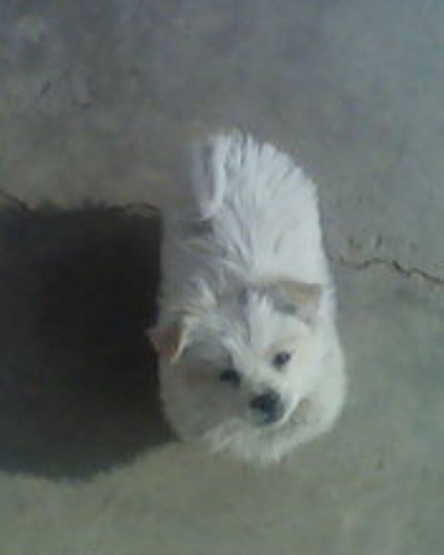 看!白绒绒的,好像冬天下的雪白的雪一样,一对温柔的小眼睛嵌在上面,再一个敏感的小鼻子,小小的嘴,一身活泼的可爱劲,就是我家的小狗了。