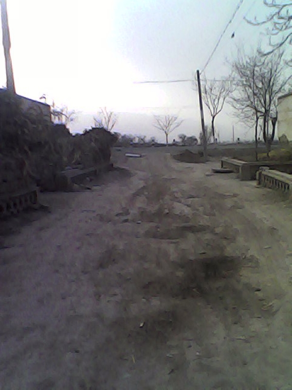 每当我走出家门就可以看见这一条坑坑洼洼的土路,一只伸向远处,天气干燥时这条小路看上去很厚一层土,当车快速走过时就会扬起很大飞尘,当有人走过身上会落一层灰尘。