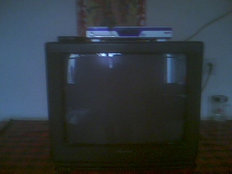 我家有一台老电视机,在我未出生之前,它就已经在家里了.它通身黑色,中间是一个22寸的屏幕,两边是喇叭,拐角处还有一个电源按钮.与现在的高科技产品最突出的区别就是它后面还背着一个疙瘩