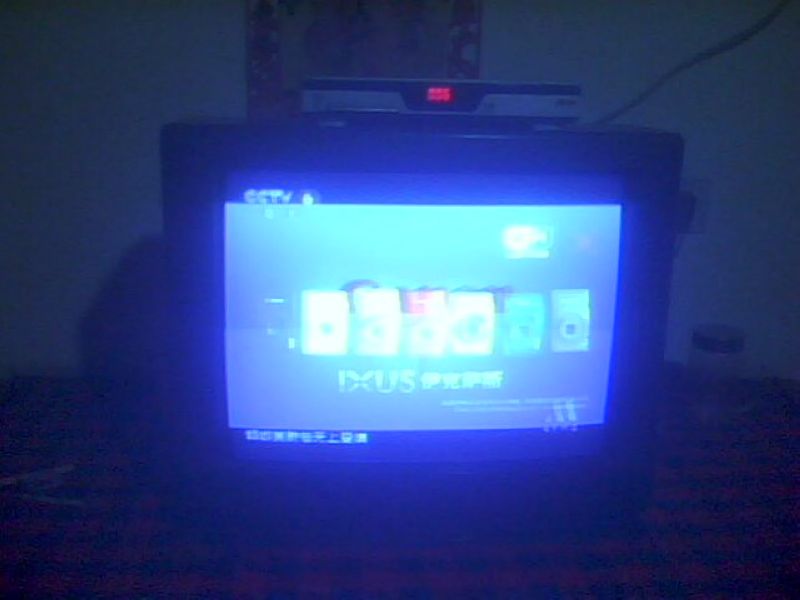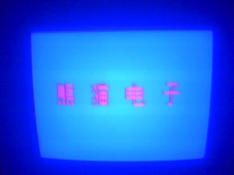 打开电视机,正中间写着几个字"熊猫电子",其余部分都是蓝色.也许有人会问了:难道这电视机只能显示这几个字吗?别着急,打开它还需简单操作一下.