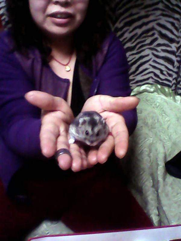 它来到我家已经半年多了,也和我亲密了不少,只要一听到我呼唤它,立即三步并作两步冲过来,趴在笼子上看我。我可喜欢抱它了,它四只热乎乎的小爪子踩在我手上,又软又棉。这个小胖子可淘气了,只要我抱它,它就啃我袖子,往上跑,有一次还钻到我脖子里了呢。再后来,只要一放出来,它就满地乱跑,哪隐蔽往哪儿藏,想逮住它可真不容易。