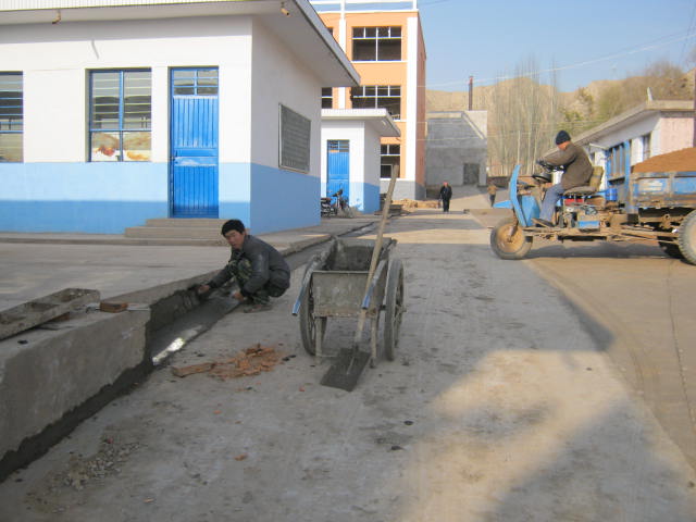 我们的教学楼快修好了,这几天学校正在硬化东边的那条主干道,以前这个地方是土路,一到下雨的时候,我们走在上面非常的泥泞,现在学校要硬化它,我们非常的高兴,一方面我们不用再走土路了,另一方面硬化以后我们的校园也会更加的漂亮。