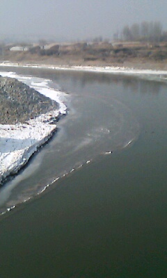 到了冬天,河水不再是浑浊的,也不再是疯狂的,而是变得清绿而且平静。雪下过后,水面上漂着散落的块块麻浮(方言,意为碎冰块),而且还有野鸭子在上面游着。