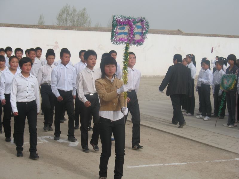 一年一度的春季球类运动会在学校拉开序幕开始了。看!首先映入眼帘的是一排排整整齐齐的的“队伍”,那是各班学生举着他们精心装饰的班级牌大喊着口号从座席台前走过,那口号真是喊的整齐,喊得让人有点震耳欲聋之势 。