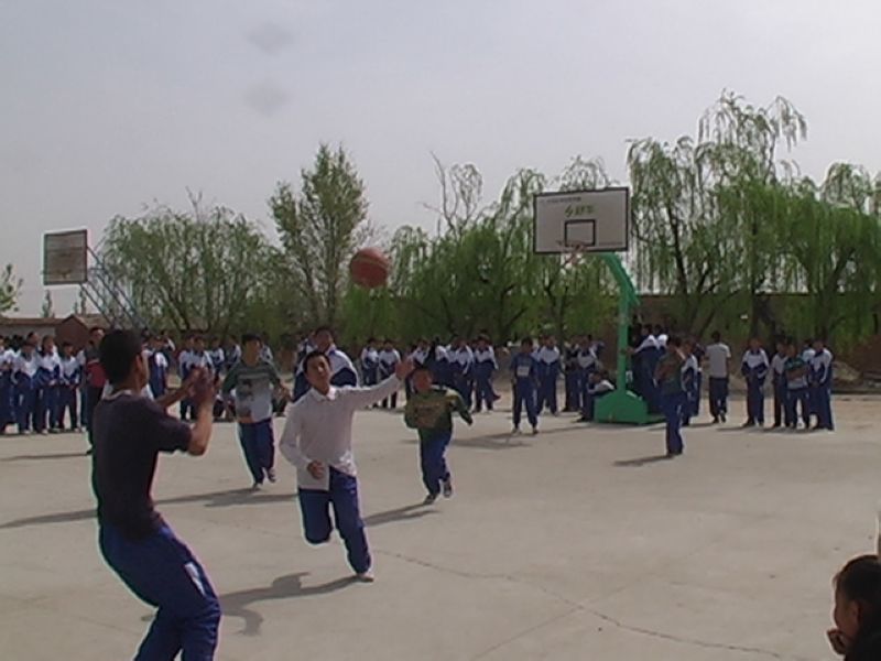操场上的每个角落都挤满了学生,他们观看比赛还为自己所在班级加油。篮球运动会员发挥自己的水平,努力的为自己班争光,篮球运动员门熟练的接住球,运球,篮球在他们手里飞舞。