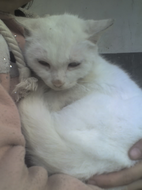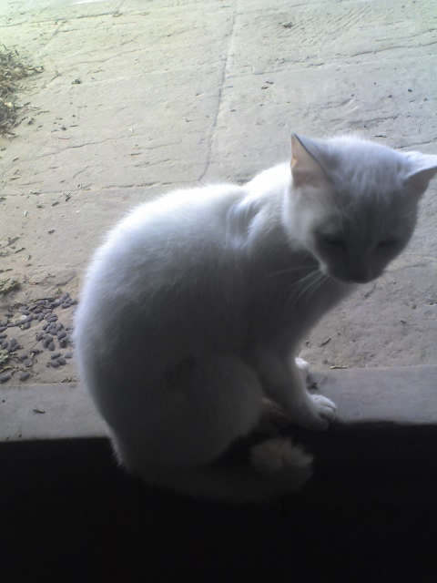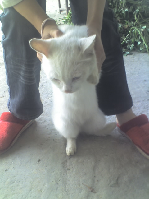 我家养了一只既可爱又淘气的猫,我非常喜欢它。瞧,那一身雪白的绒毛上没有一点儿瑕疵,毛茸茸的尾巴拖在身后,这就是我家的猫咪了。每次我给它喂食,它就和我亲热起来了——一会儿用头顶我的腿,一会儿用舌头舔我的脚,还“喵——喵——喵”的叫个不停,等吃饱了,又乖乖的跑去玩了。你别以为它一直这么乖,有时可淘气了。