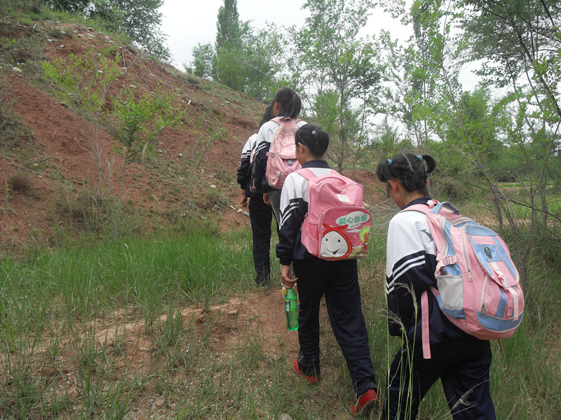 在途中,我们“翻山越岭”,走了很多有趣的小路。小路旁边是一棵棵绿油油的枣树汇集而成的巨大的地毯画,令人回味无穷。最后走到了修铁路的便道上,一路上伴着尘土走了半个小时才到学校。