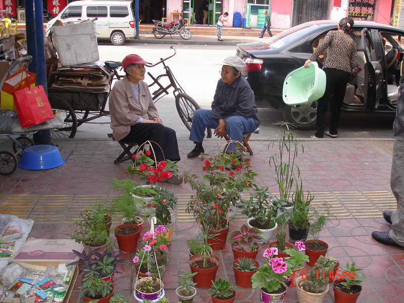 地下这些花,都是她们俩一起在家里自己栽培的,每天都细心的浇水,施肥。虽然她们看起来都很柔弱,但却有过路人不停的夸她们的花漂亮。争抢着想去买。