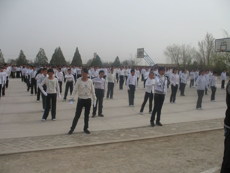 第二项是进行广播体操比赛,先是初三的进行比赛,接下来是初二4个班的比赛。终于到我们初一4个班的比赛了,我们怀着忐忑不安的心情,分成了三列。广播操音乐响起,我们开始做准备,终于正式开始了,我们三班穿着整齐的校服,像一位强健的运动员,正展现着自己的风采。