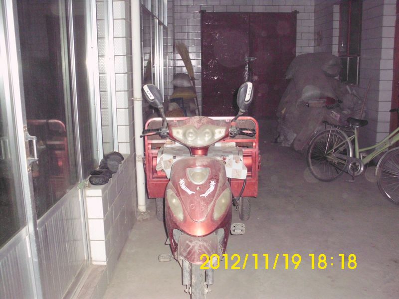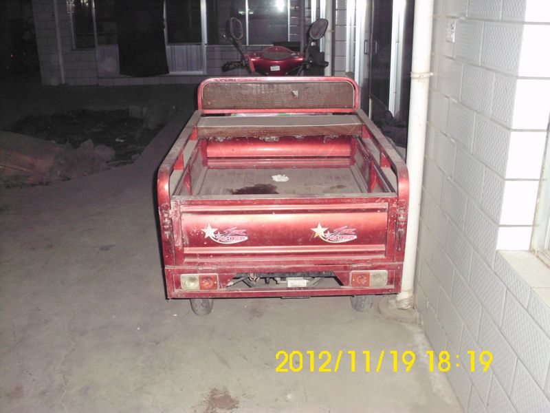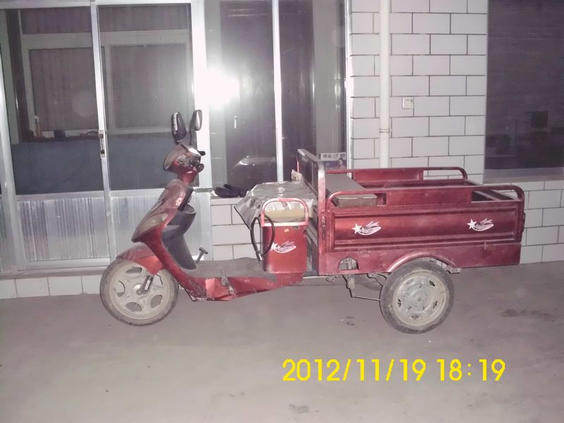 这辆三轮车操作起来很简单,只要插上钥匙,一拧车把就开始走了,非常方便,车把下面还有大灯的开关,转向灯的开关,喇叭的按钮,另一面还有倒车的。它的车闸也非常灵,能在紧急情况下及时刹住,每次我一刹车,都会在路面上留下一条痕迹。这就是它的性能了。