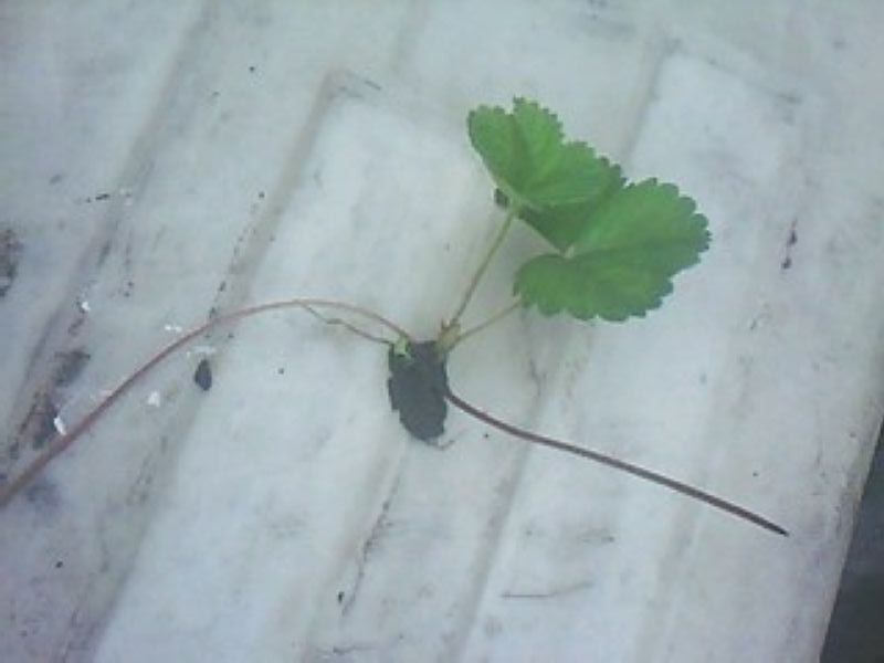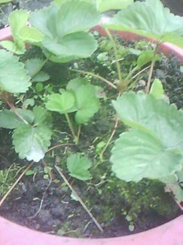 现在草莓结果的时间已经过了,可是,另一个季节又来了——发苗!瞧,家门前的那棵不正是吗?