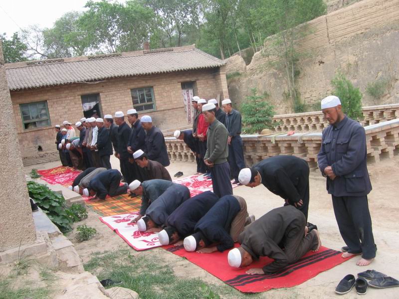 这时一大群邀请的阿訇从门里进来,坐在炕上念了起来.那声音忧伤极了,客人们和亡人的亲人都跪在地上静静的听着,思念着亡人.厨房里的妇人正在忙碌着,因为阿訇念完索儿,就要将食物端上去.开始端上去的是果碟,水果必须是五种以上,果碟就是将新鲜的水果切成花样,放在碟子里,为了美观摆成各种各样的花饰!,就叫做果碟]人人都有份,吃过后.将做好的菜舀到碗里把香腾腾的牛肉或羊肉放在菜上面,端给阿訇.等阿訇和大辈的老人吃完后,我们才能吃.
