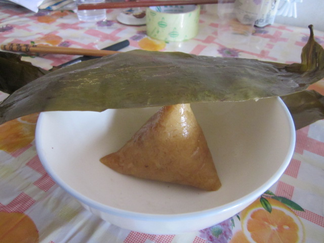 把包好的粽子放在蒸锅上蒸,过了一会儿香喷喷的粽子就出锅了。我扒开叶子大口大口的吃着,好香啊!糯米粘粘的,红枣甜甜的,那真是人间美味!