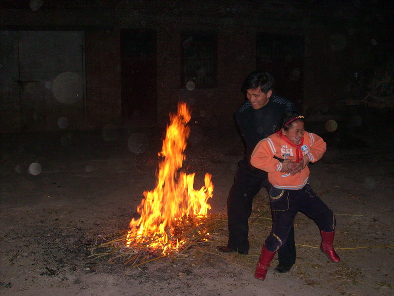正月二十三是一个非常热闹的节日。这一天夜晚人们会拿一些柴草、麦秸堆在一起,然后点火,每家都是一样。那时你会看到已被火光照的如同白昼一般的街道和房屋。瞧,这家已经准备好了,正等着从火堆的火焰上跳过。人们用这种方式来去掉过去一年中的坏运气,迎接新的一年。
