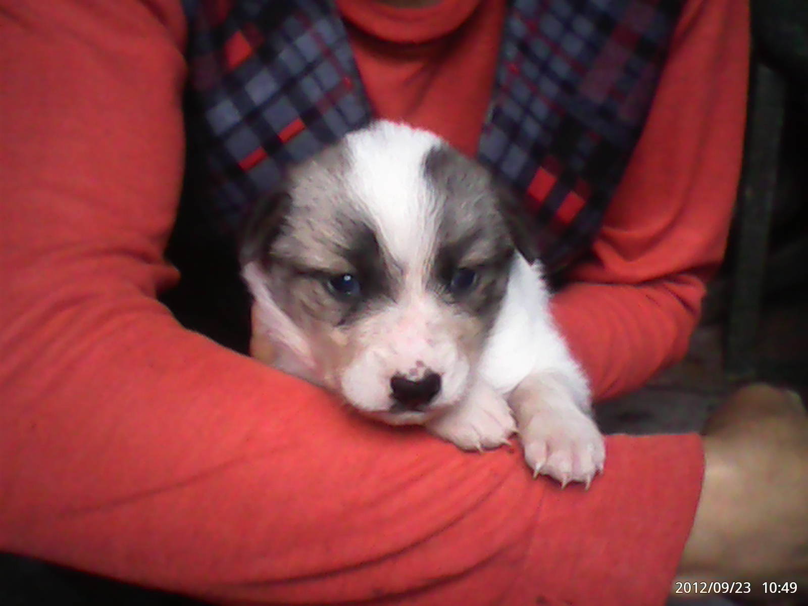 我家的大灰狗生小狗崽了!小狗是在我上学期间出生的,所以我错过了它降生时的表情、动作甚至时间!我回到家时,小狗已以睁开眼了,那灰色的迷蒙的双眼看着可爱极了,瞧!我给它拍照时,妈妈和弟弟还不住地抚摸着它呢!