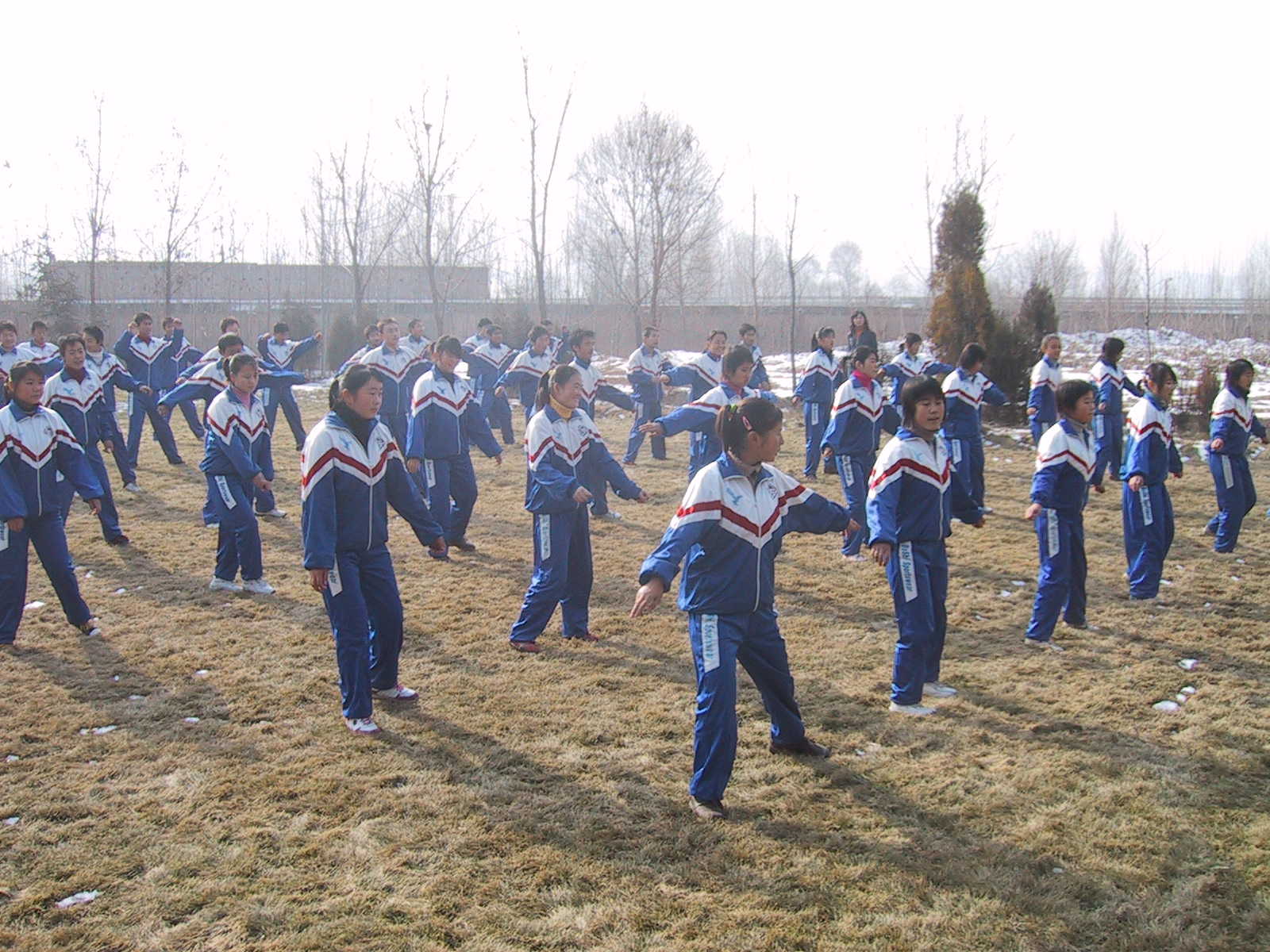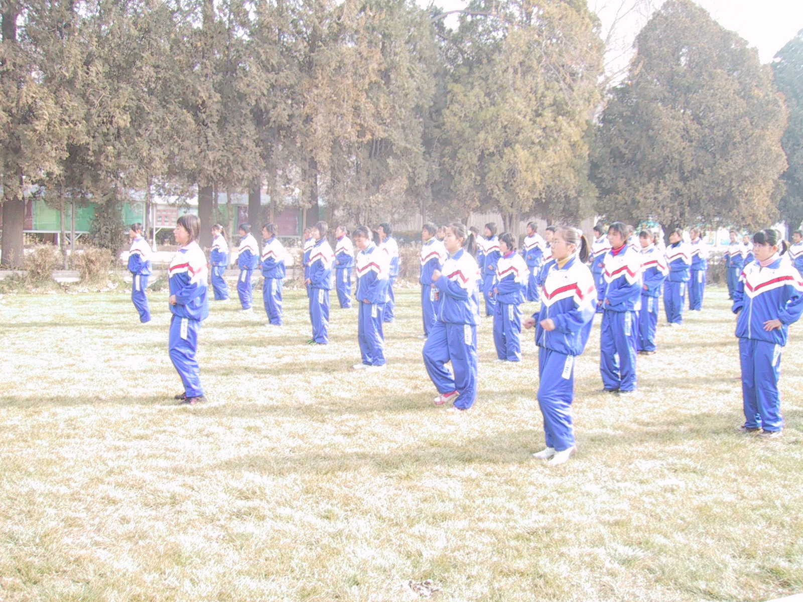 记忆中的那一天,我们统一穿着校服校裤,排着整齐的方队在操场上做着那能体现我们中学生精神的"英雄少年"。