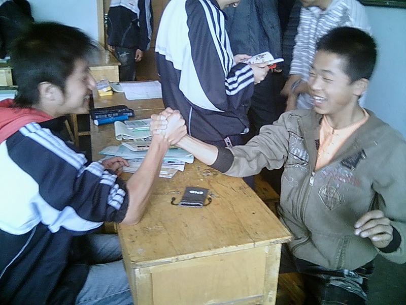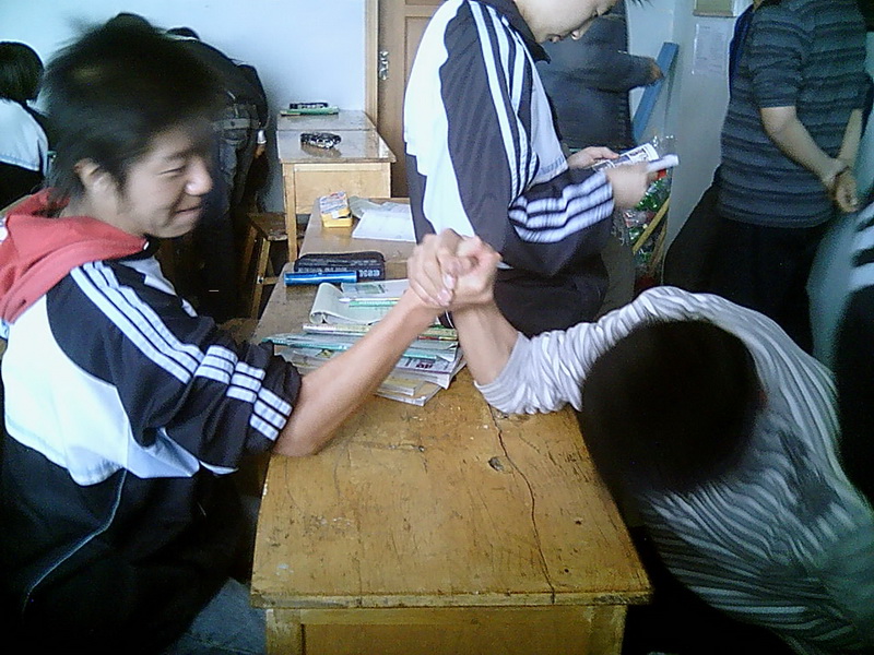 “使劲啊!我才用了五成力啊!你就不行啦!输定了哦!”