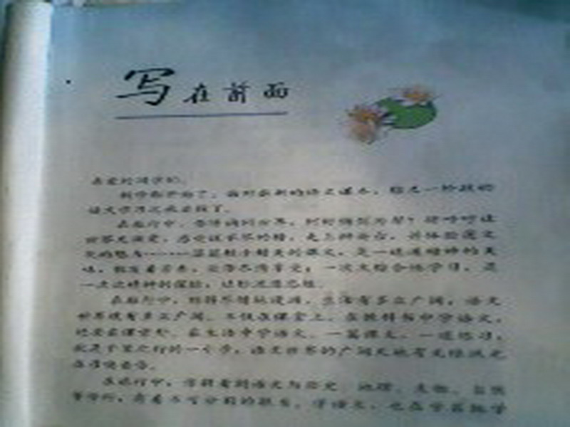 新的一学期又开始了,我们又发了新的课本,翻开书,第一页就是“说明”。这也就是在向你介绍这学期的重点内容,让我们怎样去学习,怎样去抓他的重点,要不然一学期下来我们什么都没有学习下,那样我们不是辜负了父母的愿望了吗?谁的父母不希望自己的儿女有出息呀!