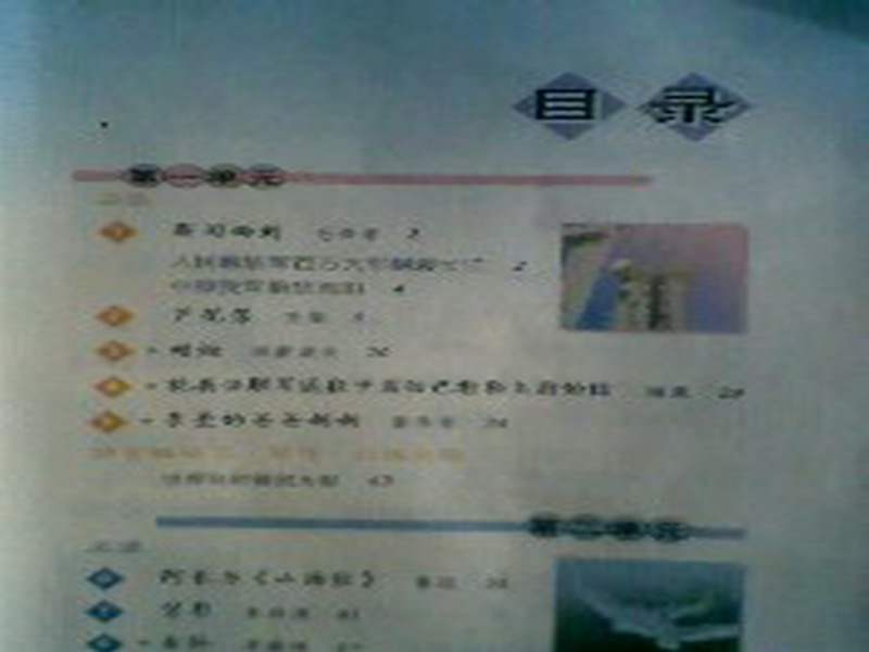 下一页就是目录了。它向我们介绍它里面的东西,有几个单元、多少篇课文,另外还有几篇课外古诗词,我们得上课认真听讲,才能学懂。
