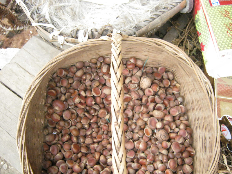 这是我们家乡野生的毛栗。别看它个头小,它比个头大的板栗要好吃一些。每年“十月一”以后家乡的山上很热闹,家里的劳力大部分都会上山去捡野生的毛栗。它的价钱很不错,在经济上是一笔收入,它还是我们爱吃的食物之一,能干的妈妈们还能把它做成可口的菜肴。