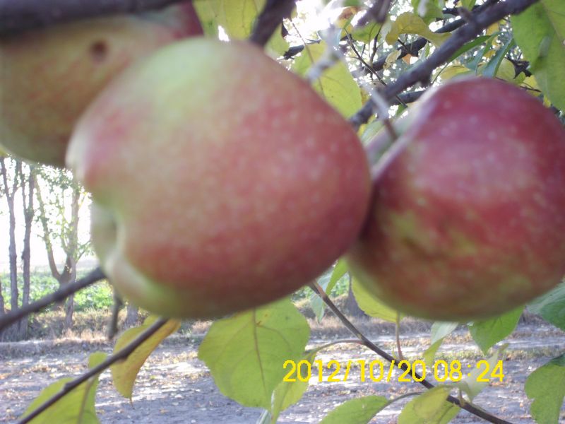 秋天的果园里也是一片丰收的景象。果园里的人们忙着采摘那一个个又大又红的红苹果。一个个苹果长在树枝上,透过树叶间的缝隙就可以看到那令人垂涎欲滴的大苹果,摘一个尝一口,又脆又甜的,使你还想再吃一个。一棵又一棵树上的苹果被人们摘下来运会家里储藏,看着家里那一屋子的苹果有种很满意的感觉,觉得自己家今年一年没有白忙活,终于有了收获。