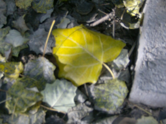 走过胜蓝路的那条小路,不经意间瞥见了那片黄,它就那么静静地躺在树底下。一看那片叶子是那么的鲜嫩就知道它离开树也许不是那么的久。我甚至可以想象昨晚它是多么坚强的在隐忍那秋风的肆无忌惮。可是命运却是可悲的,生命是弱小的,大自然是可怕的,但树叶这顽强的精神却是可贵的。