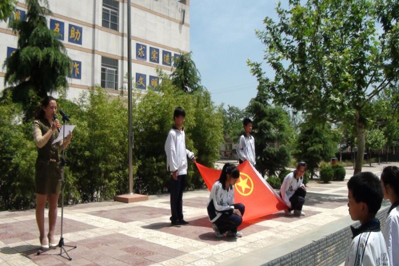 接下来是宣誓,这是最令人激动的时刻,也是入团仪式中最重要的,我们半握拳,举在头的右边,一起高呼誓词。