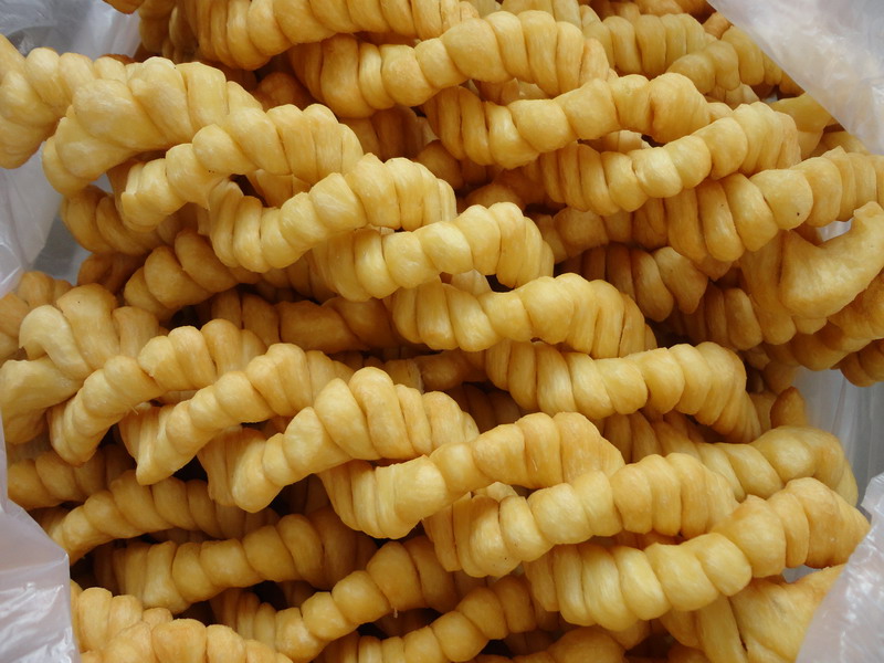 在赶集时,市场门口最多见的就是麻花,虽然那里的麻花赶不上天津麻花名气大,但吃起来的味道确实很棒的!麻花都是自家的面做成,油也是自家的菜籽榨成,用这种油炸出的麻花,既脆既有麦香和油香。