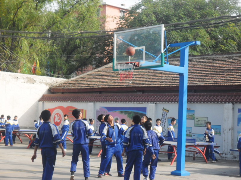 看,在那篮球场上,篮球爱好者们正在进行着一场比赛,他们两队不分上下。其中一对的队员团结一心,表现甚好,都希望能够打败对方,赢得比赛。瞧,其中一个队员凭借他熟练的技巧,躲过了“敌人”的防线,将球投入篮中。