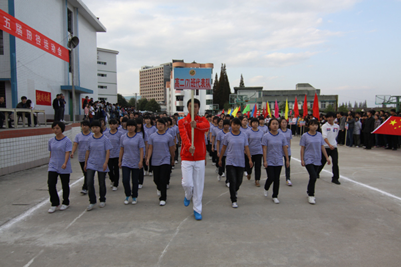 参加跑步比赛的同学们还在准备中,跑道两边已经挤满了观众与拉拉队。只要有本班同学的比赛,同学们那歇斯底里的呐喊助威声此起彼伏。随着“呯!”的一声发令枪响,运动健儿们如离弦的箭一般地冲向终点。与此同时,跑道两边的加油声一浪高过一浪,观念们似乎比参赛选手还要激动。