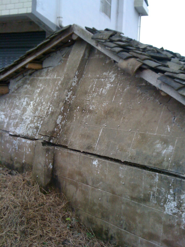 这是一座被08年地震震坏了的房子,记得当时全是废墟一片,除去一些比较坚固用砖块、钢筋修的房子外,几乎没有剩下完整的了。而这座房子却只被震裂了一个缝,但还是属于危房,是不能够住人的,当时主人嫌麻烦就没有把它拆了在原地重修,就重新找了块地。然后,这座房子就被留到现在,似乎一看到它,就想起了那场天灾带给我们的痛苦回忆。