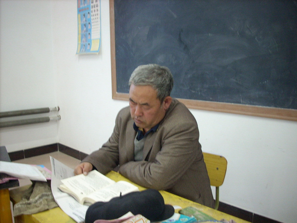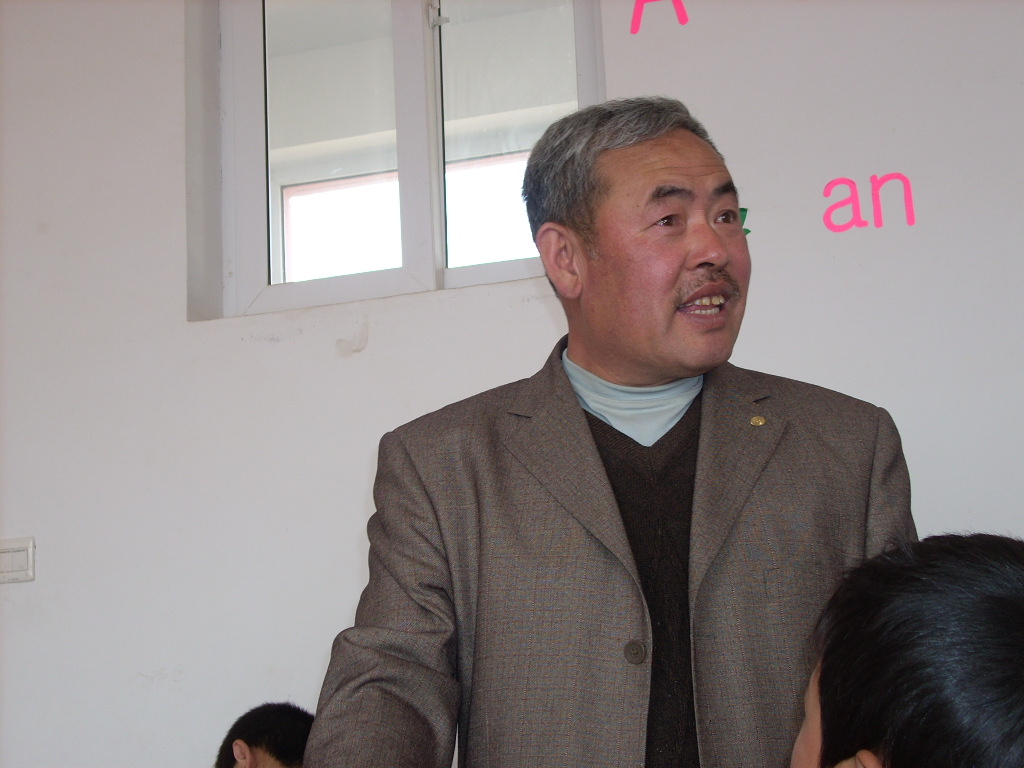 看,这就是我的英语老师。他长着圆圆的脸庞,灰白的头发,他的身体很丰满也很健壮。他很慈祥,我们很喜欢他。