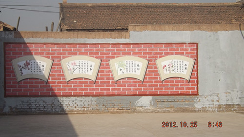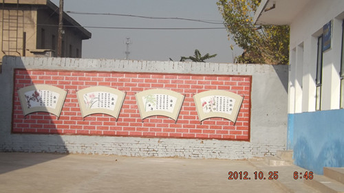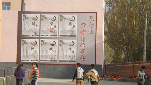 我们学校最大的一块文化墙就是锅炉房上面的,每天我们要进教学楼的时候都会看到,上面的一句话“天行健 君子当自强不息”时刻提醒着我们要努力学习。