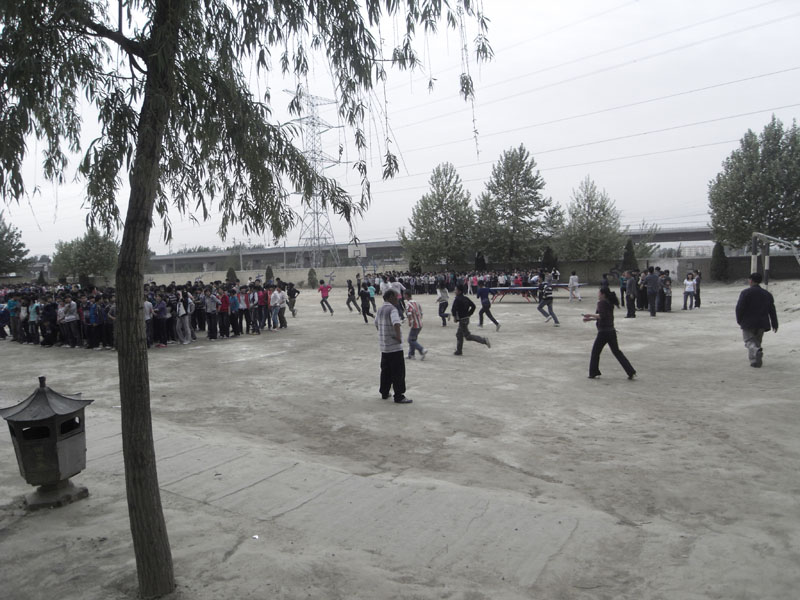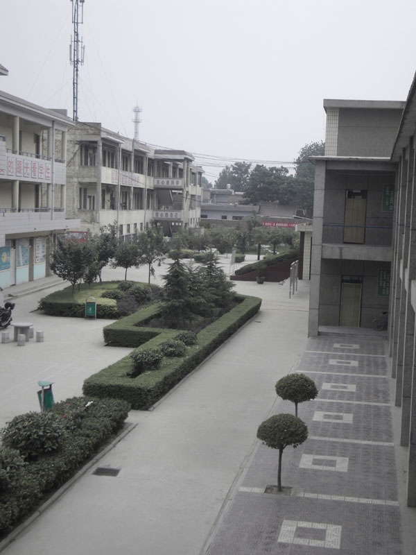 再往里走是一个大操场,操场的中央有一个升旗台,操场的西面是餐厅,我们大家每次都会有序的在那里排队打饭,东面是公寓楼和厕所。