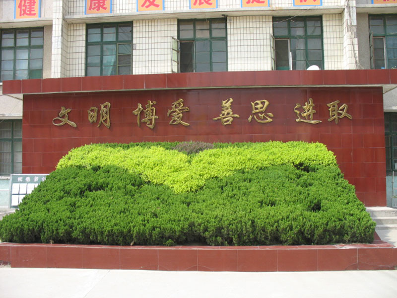 我爱我们的校园!刚进大门就能看见这八个大字;"文明、博爱、善思、进取"。左手那边是九年级的教学楼,右手那边是七八年级的教学楼。
