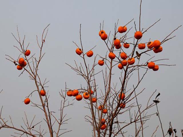 柿子树是长在山里的一种植物,每到秋天,它都会长一些青溜溜的果实,等果实长成黄色以后就可以食用了,但等到冬天,它的树叶就会慢慢变黄,直到凋落,那时候,他就是一个“光杆司令”了。