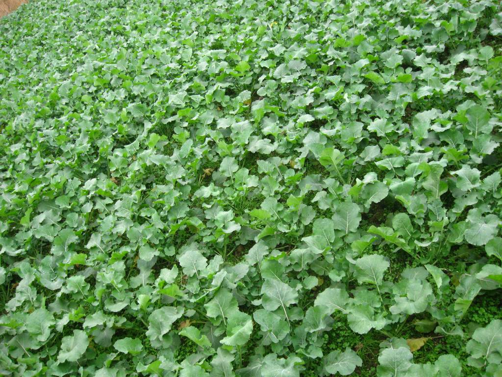再往下看,看的就是一棵棵油菜,围成了一片绿油油的小平地,人们也非常快乐,虽然人们辛苦的种下了油菜,但他们一天天盼着美丽的油菜长大。
