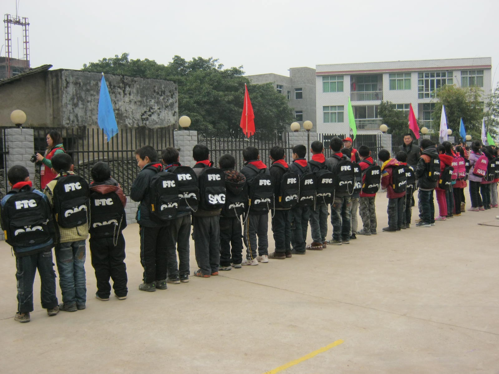 "请全体同学到外操场集合"声音从广播里传来,同学们纷纷来到操场。我看见眼前的景象大吃了一惊,原来是重庆市观音桥联盟志愿者们给我校捐赠学习用品。