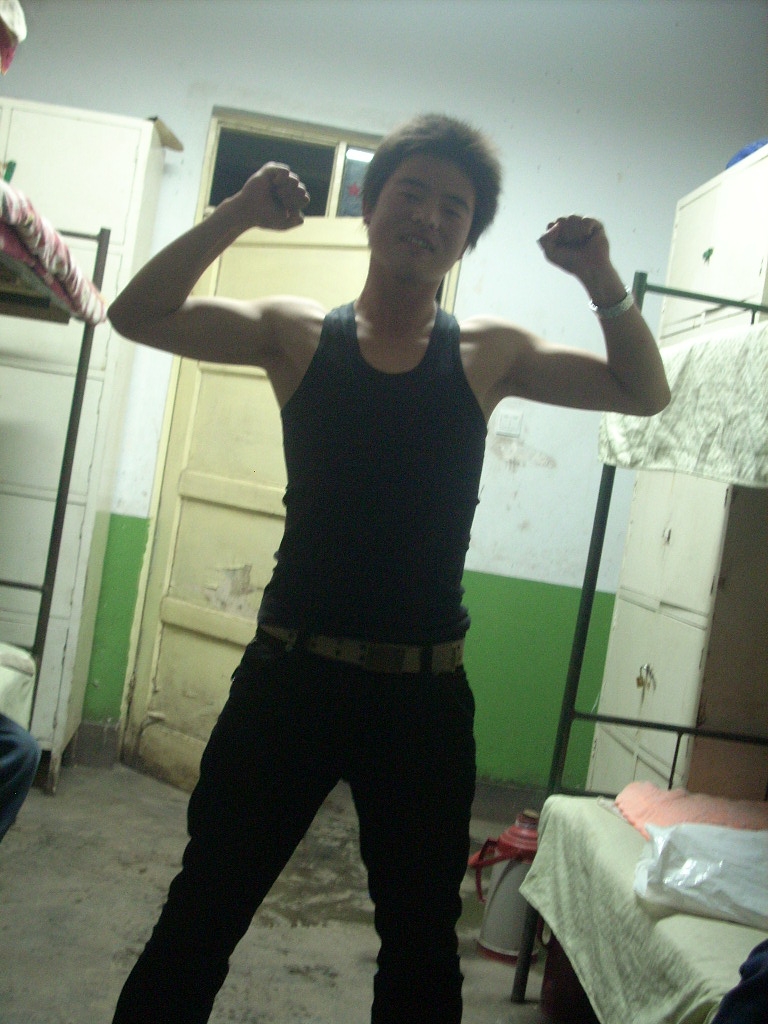 我们宿舍最有威信的是他。他外号叫"彪哥"。的确他有一身健美的肌肉,他热爱运动,体育是他的强项。他说出来的每一句话都含有哲理。所以,我们都愿意听他的话。而每到我们聊天时,他都是一脸严肃。我们却被他惹的哈哈大笑。此时的他宛如一位老先生。他每天都少不了去操场活动一下,我说"彪哥"的生活少不了运动 。