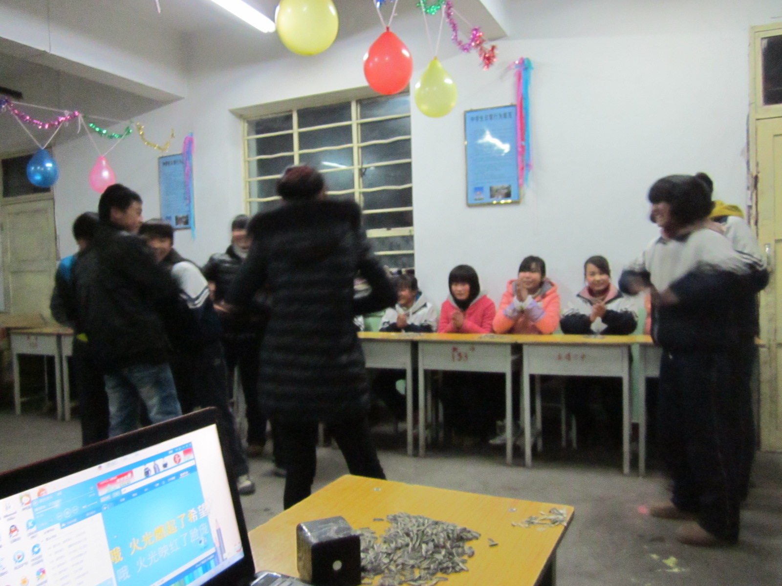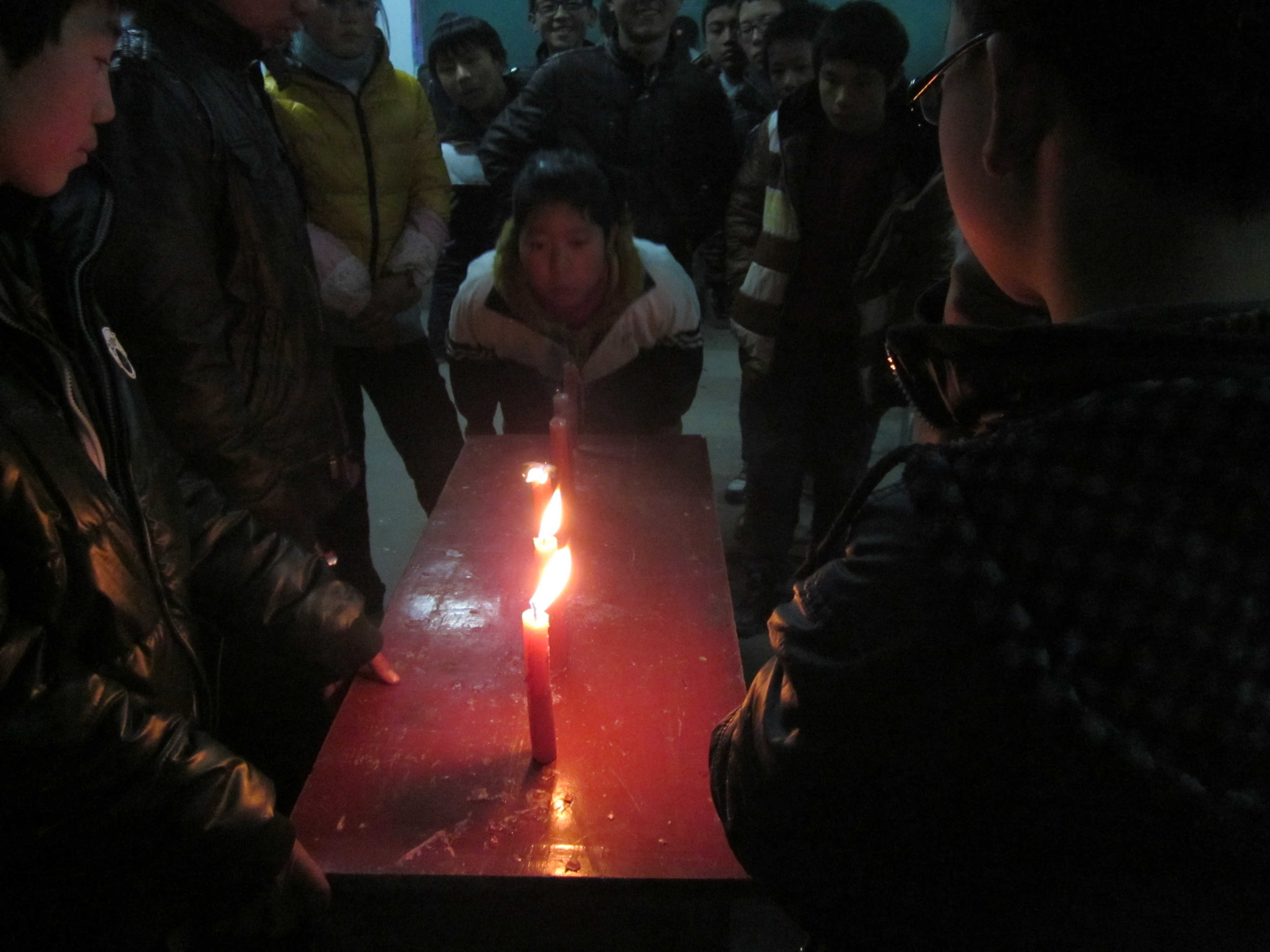 随着时间滴滴的流逝,眨眼就到了晚上,我们都在老师的带领下投身于喜悦的游戏当中。火炉中灼烧的炭火放出的热量伴随着火焰的光亮汇成一条喜悦的长龙,灵活地穿梭在我们中间,照的大家原本通红的小脸更加红润。不用多问也能猜到一开始我们大家玩了吹蜡烛这个游戏,可怜的是,我竟然再次游戏中,一个蜡烛都没有吹灭,最终被罚唱了一首歌。
