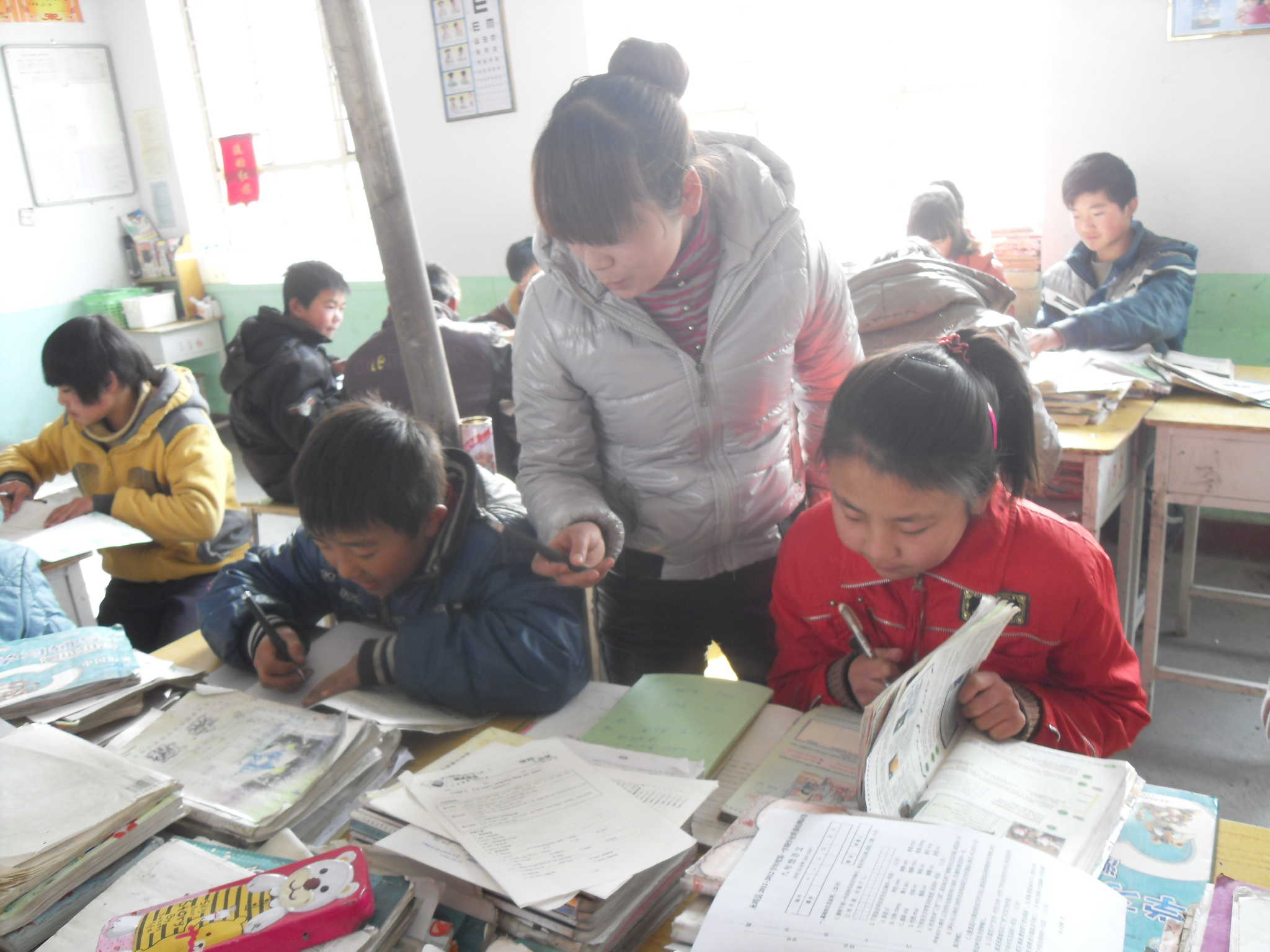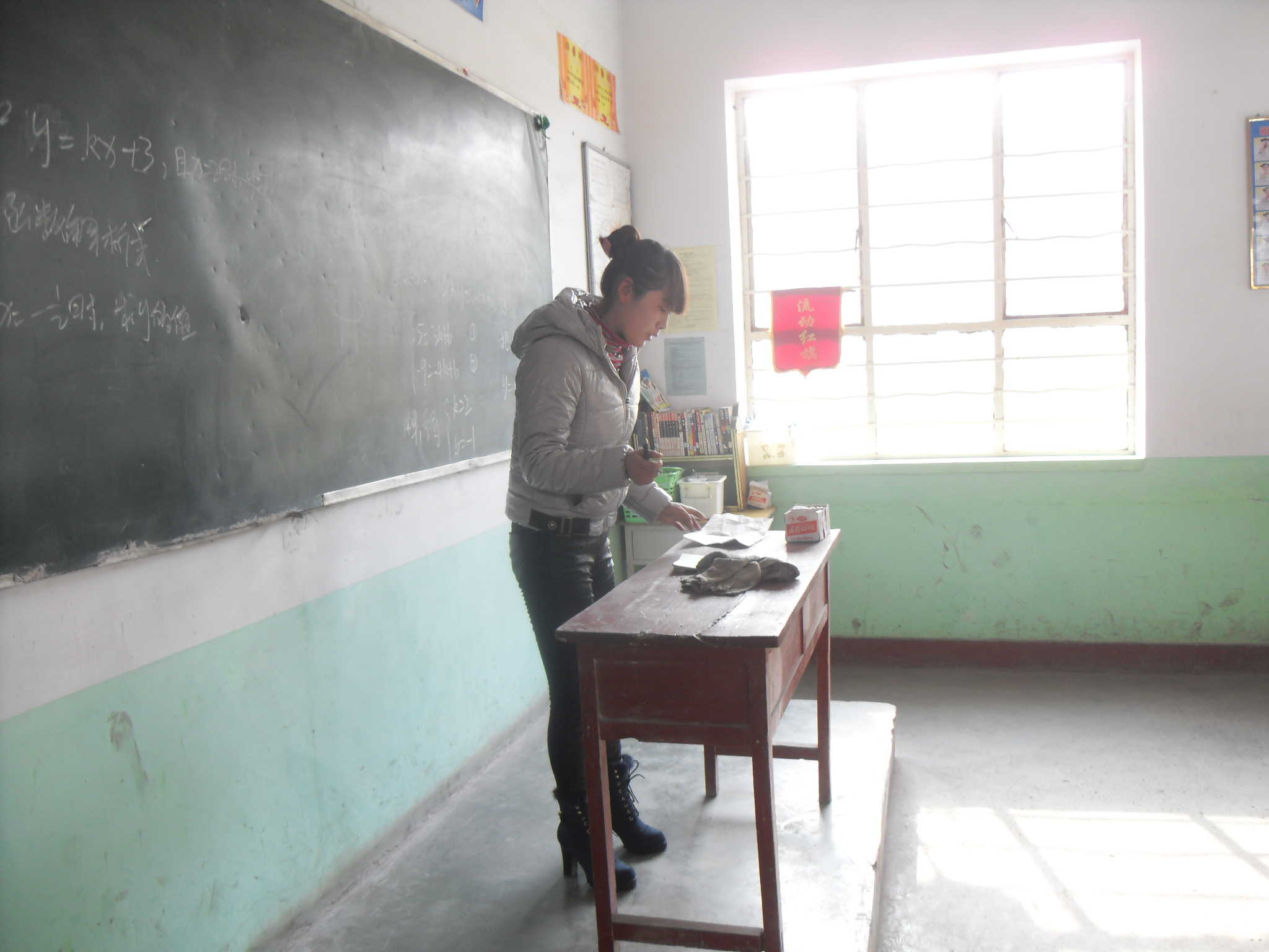 这位新老师看起来很和蔼,很友善。她的个子不是很高,眼睛好像一条缝,戴着眼镜,看起来很有修养。